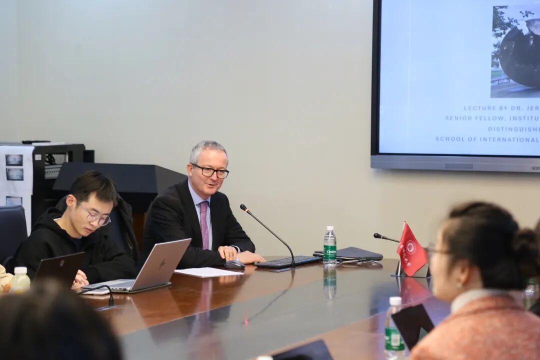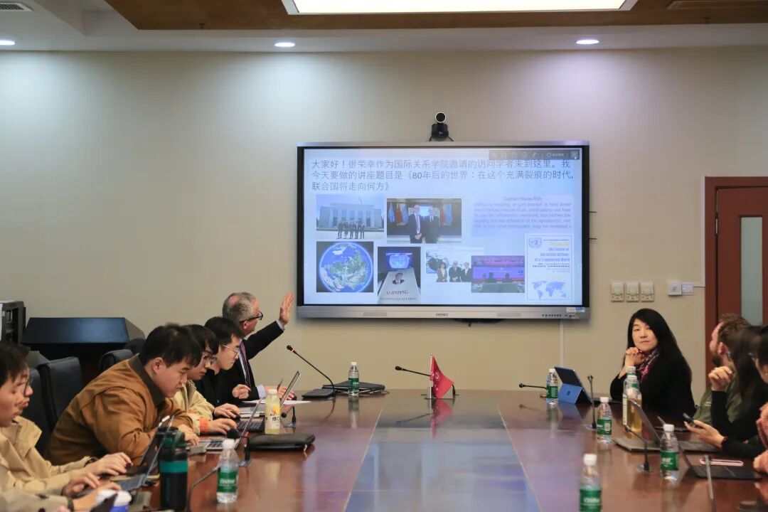 11月20日下午,欧盟外交官学者、全球谈判研究所高级研究员Dr. Jerome Bellion-Jourdan 应邀在普陀校区理科大楼 A416 室作“碎片化世界中的联合国未来”专题讲座。俄罗斯研究中心张红老师主持,孟文婷老师,南京大学区域国别研究院副院长宗华伟老师,以及中外研究生共同聆听。